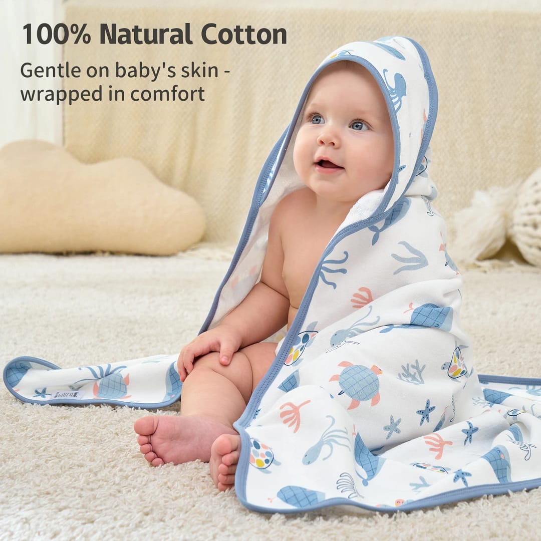 - Soft & Absorbent: Crafted from 100% cotton, this hooded baby towel provides a soft, gentle touch and reliable absorbency. Kind to your baby’s skin, it quickly dries your little one and keeps them warm and cozy after bath time — ideal for your baby.