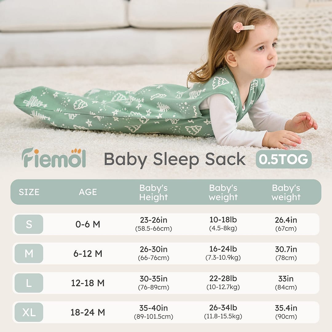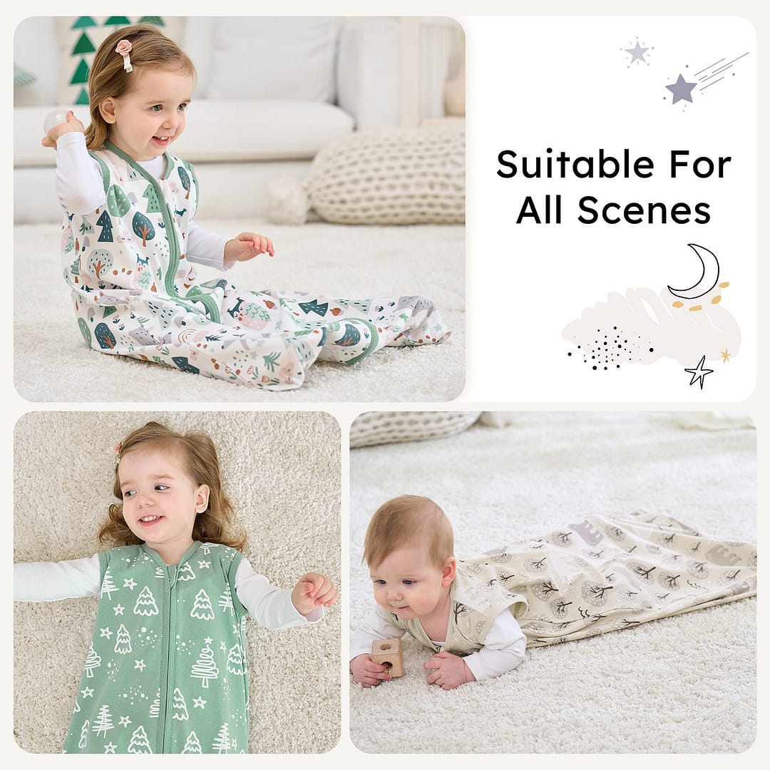 • 100% Cotton: Made from 100% cotton, our baby sleep sack applys top 10% of the premium cotton, which is more breathable and soft on delicate skin. 0.5 tog fit for moderate seasons. With this wearable blanket, your baby would neither get sweaty nor catch a cold.