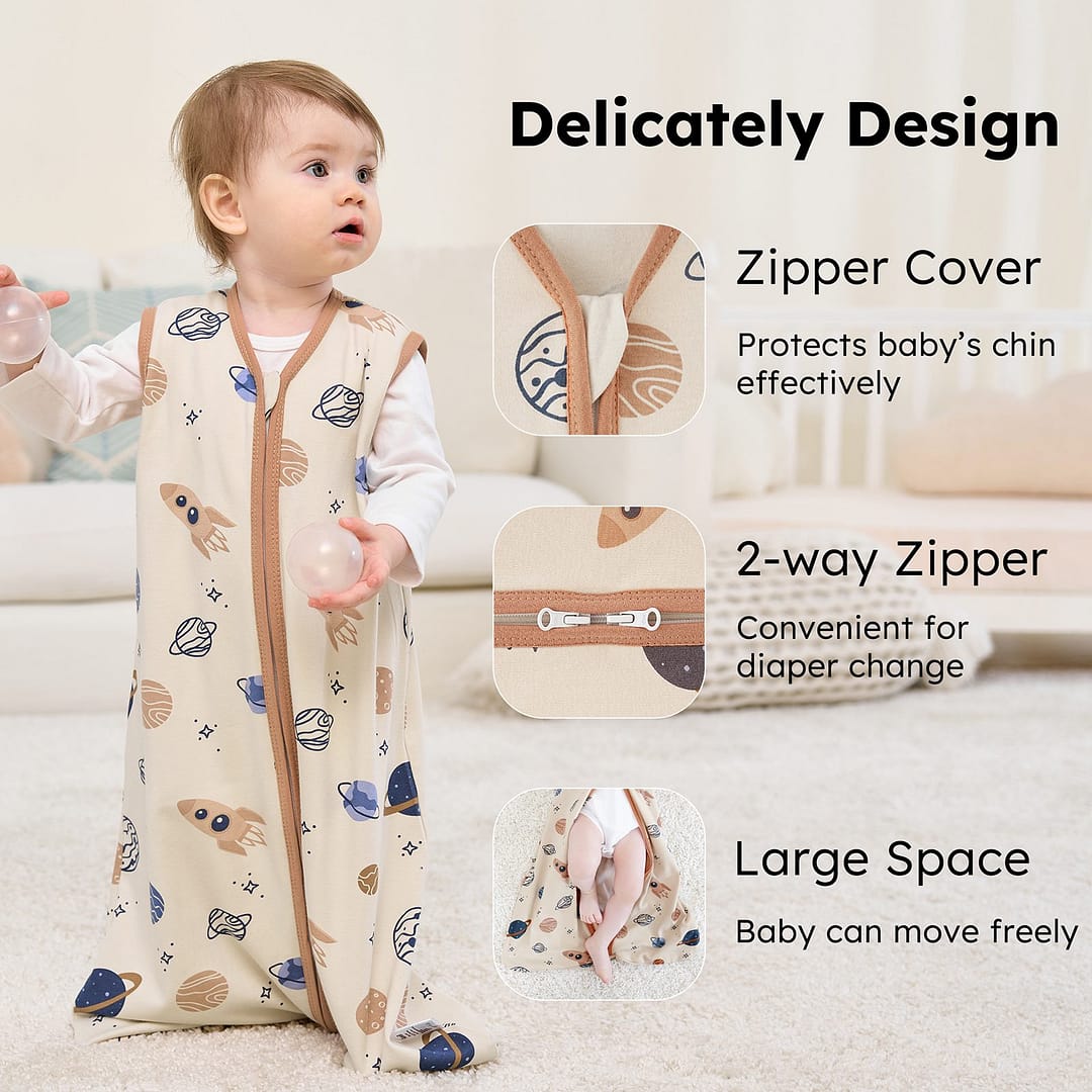 - Sustainable Double Zipper: We apply a two-way zipper on the sleep sack for a more convenient use for changing diapers. Since a good zipper for the sleepsack is as important as a proper lid for the themal mug. We equip the sleep sack with high quality zipper, which is smooth even after tens of thousands of uses.