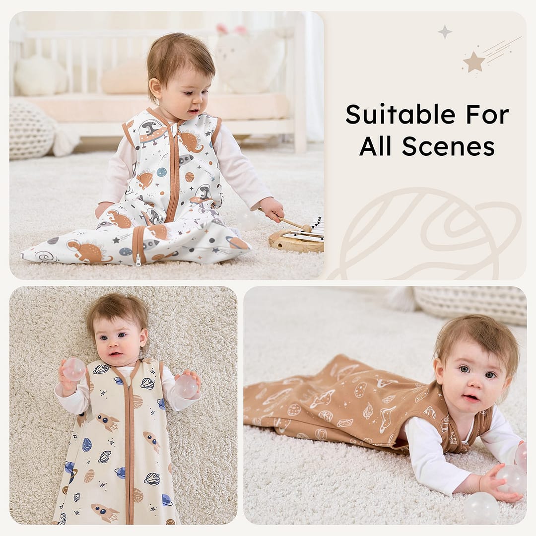 - 100% Cotton: Made from 100% cotton, our baby sleep sack applys top 10% of the premium cotton, which is more breathable and soft on delicate skin. 0.5 tog fit for moderate seasons. With this wearable blanket, your baby would neither get sweaty nor catch a cold.