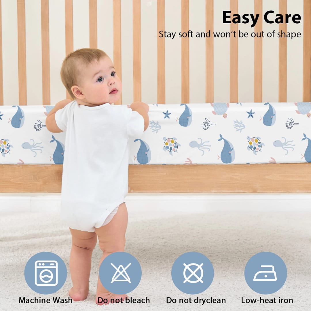 • Easy Care & Sustainable: Made from pre-shrunk fabric, our crib mattress sheets resist fading, pilling, and shrinking, even after hundreds of machine washes. With double-stitched edges and corners, our baby girl crib sheets are built to last, ensuring comfort for your baby.