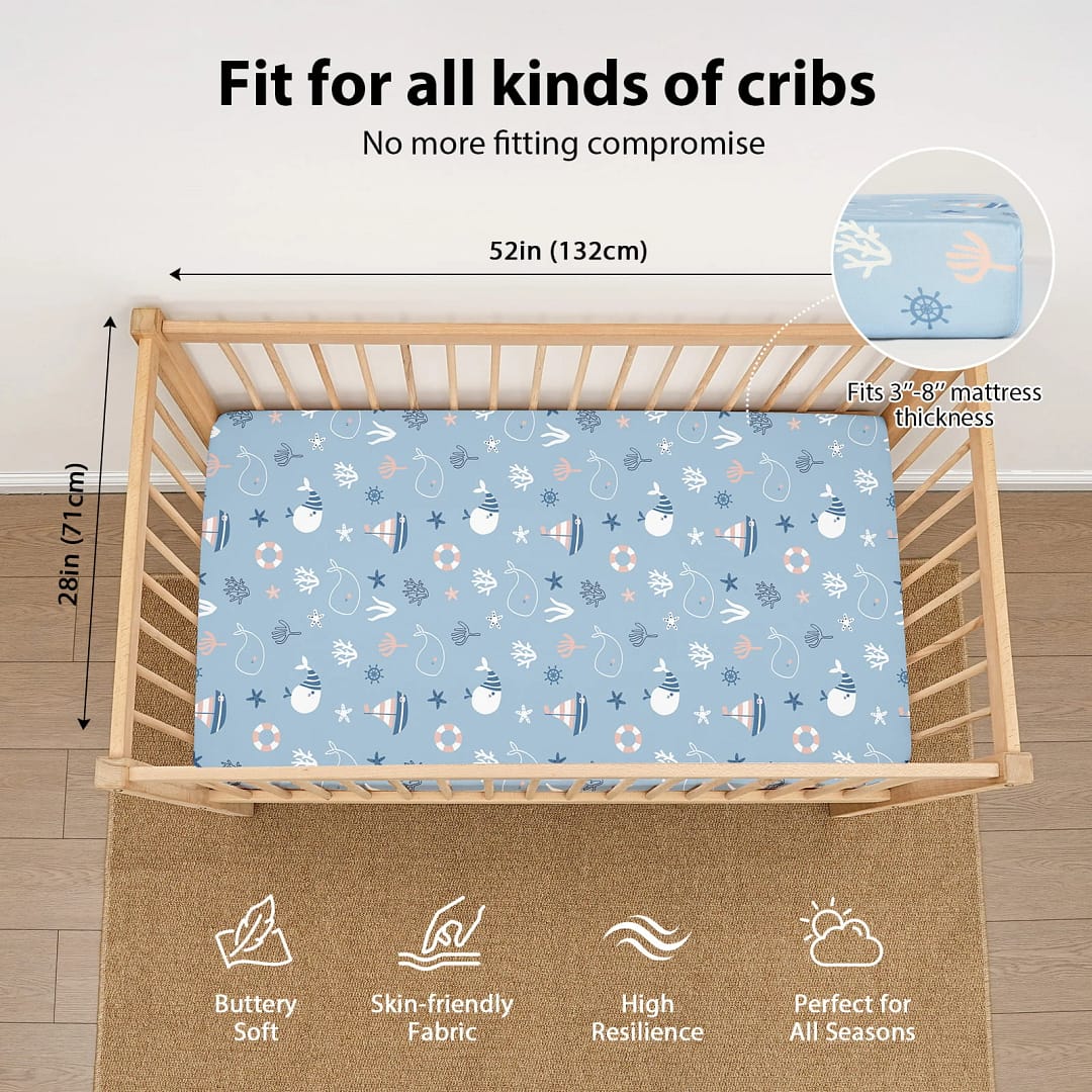 • Soft & Skin-friendly Fabric: Crafted from premium microfiber with advanced knitting techniques, our fitted crib sheets are ultra-soft and gentle, perfect for even the most delicate and sensitive skin. Designed to keep your baby comfortable and relaxed, they promote sound sleep and support healthy growth.