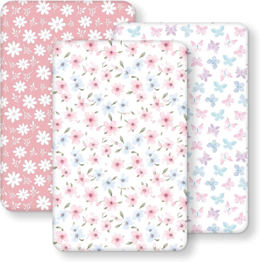 Baby Bedside Bassinet Sheets Super Soft Microfiber Pink Butterfly Flower Bassinet Extra Sheets
