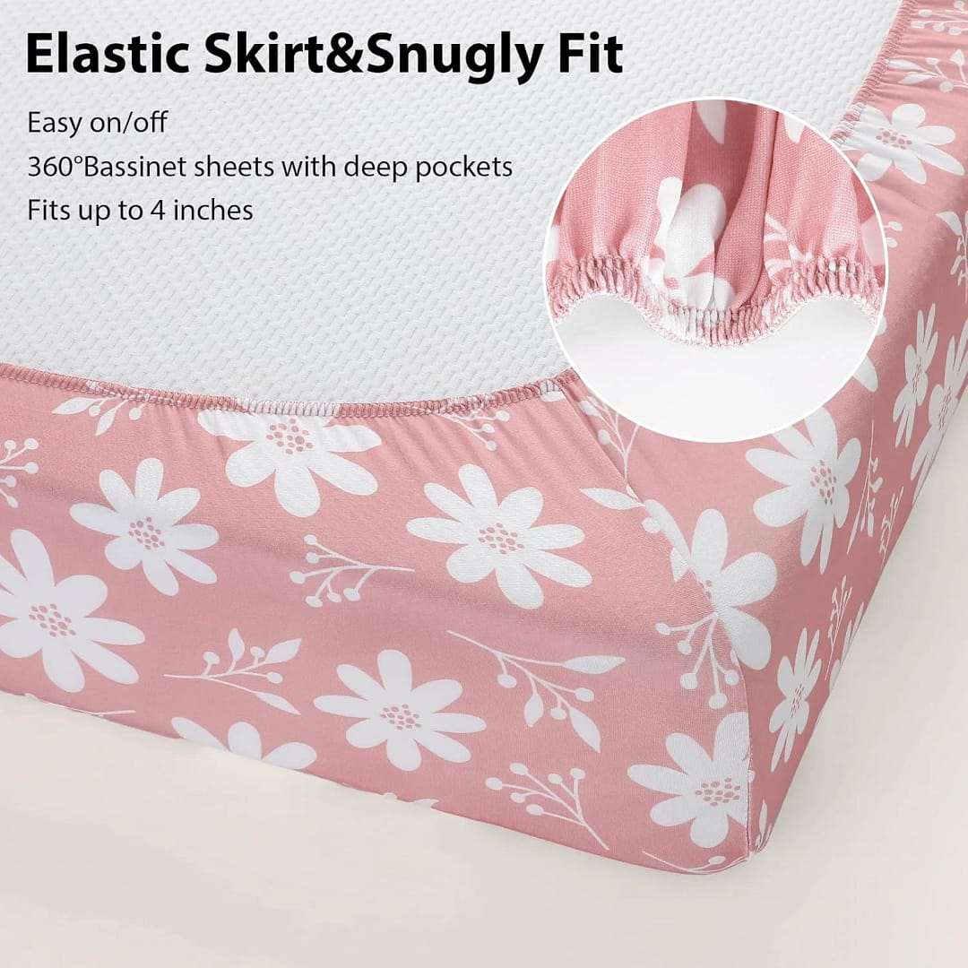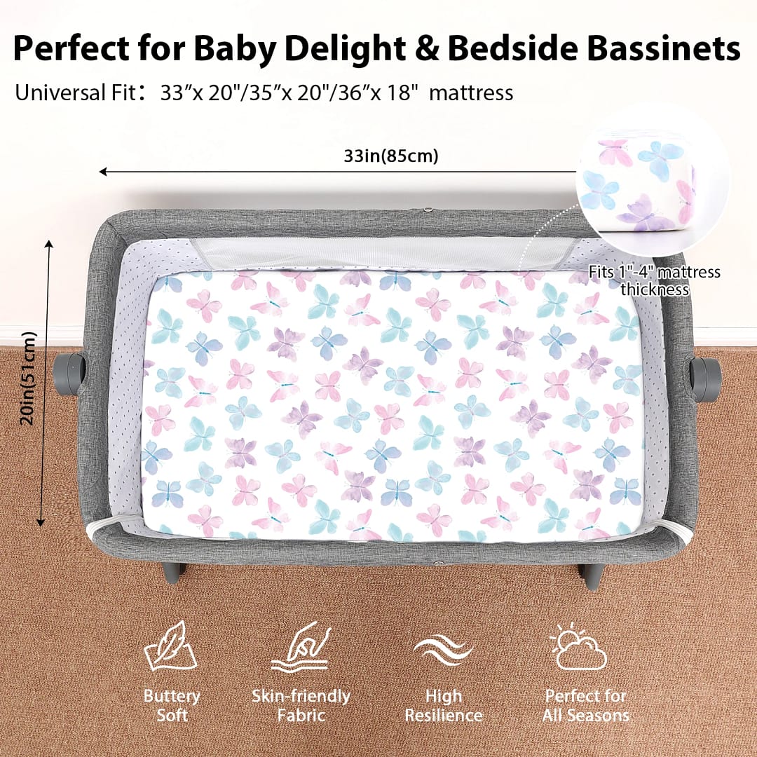 auto draftBaby Bedside Bassinet Sheets Super Soft Microfiber Pink Butterfly Flower Bassinet Extra Sheets