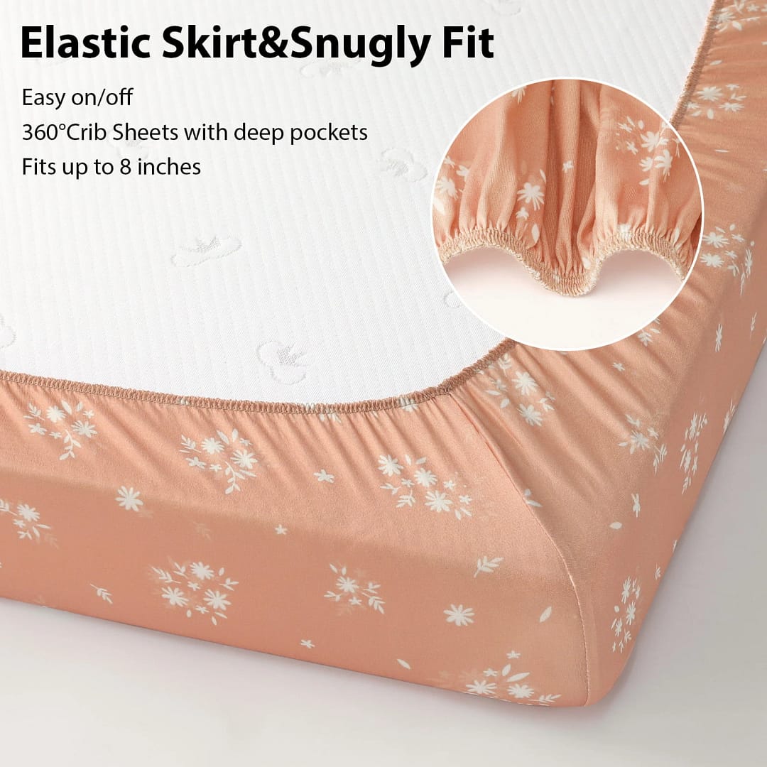 Say goodbye to struggles! With a 360° elastic band and 8-inch deep pocket, our crib sheets stay securely in place and make changing sheets a breeze.