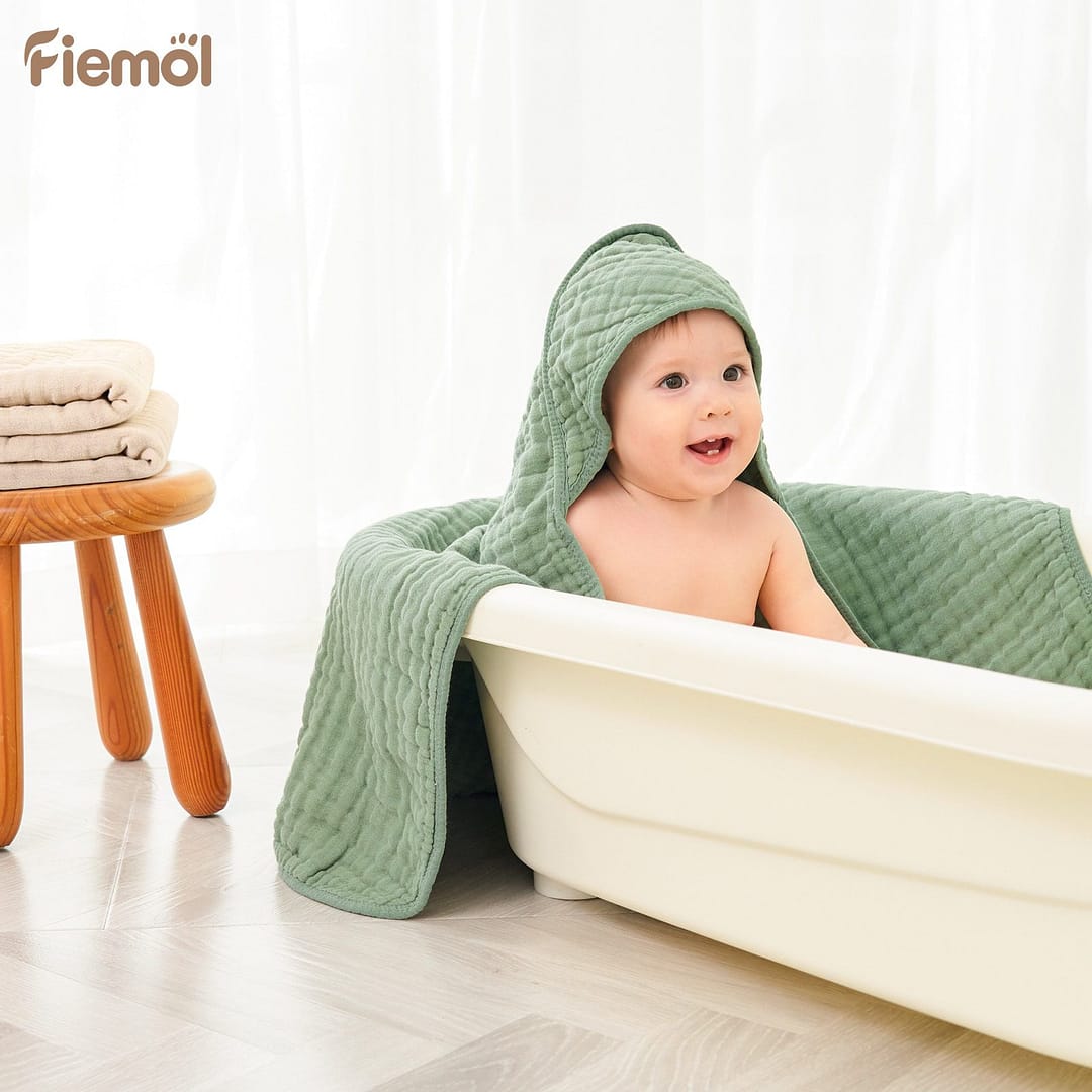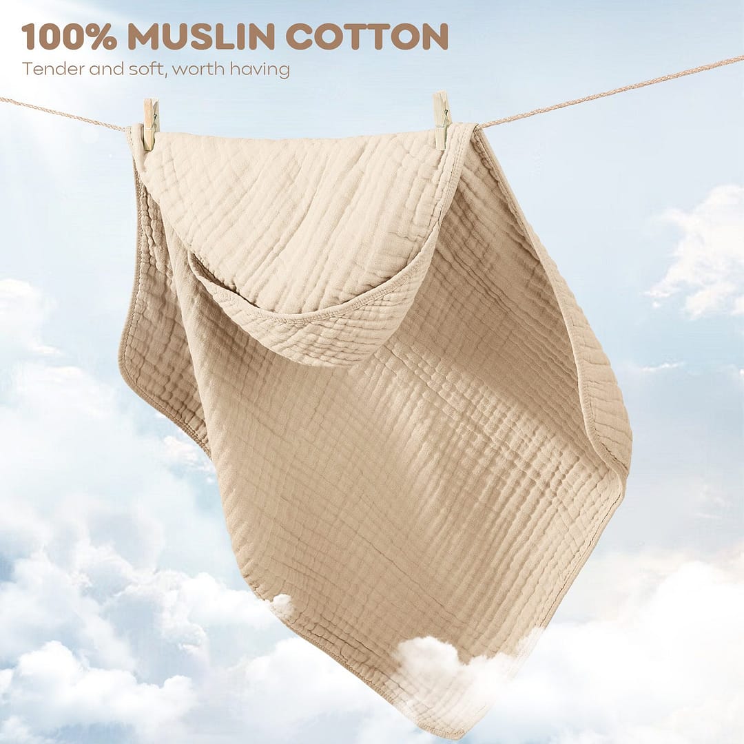 • Triple Water Absorbency: Boasting 6 layers muslin cotton, our baby bath towels have three times water absorbency than common cotton towels. The fluffy material could dry your baby from top to toe after bath instantly and keep your babies from catching a cold.