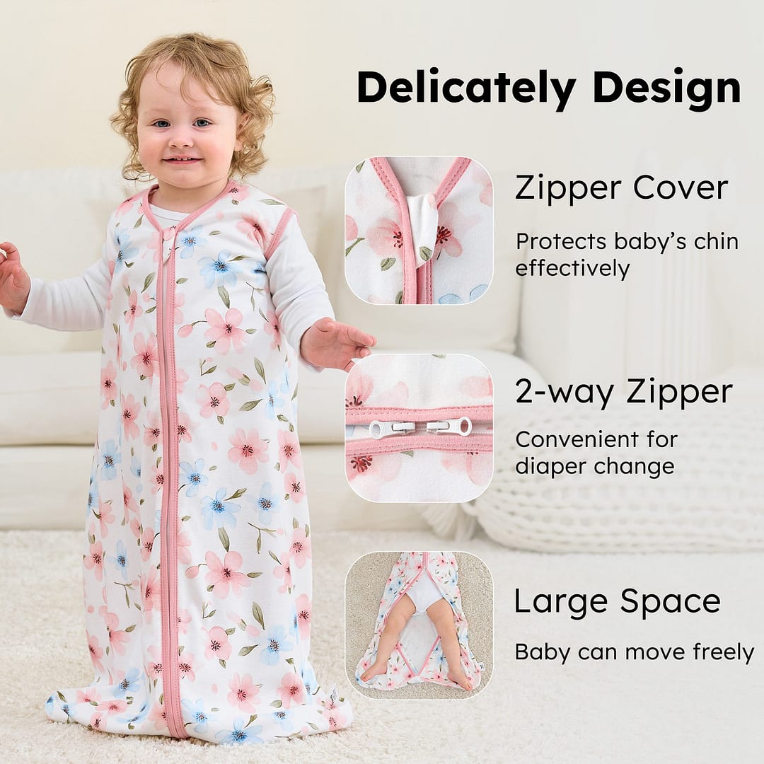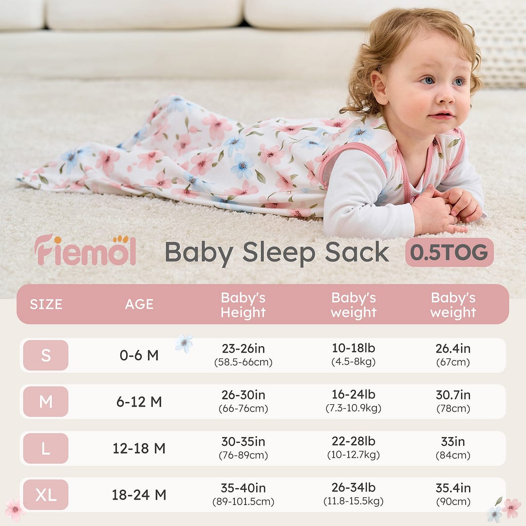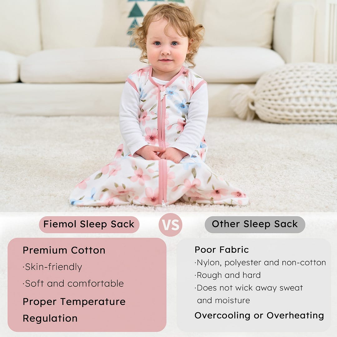 • 100% Cotton: Made from 100% cotton, our baby sleep sack applys top 10% of the premium cotton, which is more breathable and soft on delicate skin. 0.5 tog fit for moderate seasons. With this wearable blanket, your baby would neither get sweaty nor catch a cold.