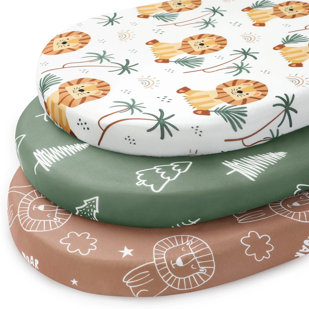 Snug Fit: Measuring 32” x 16”, the 3 pack bassinet fitted sheets fit most oval, round, rectangle, hourglass shaped bassinet mattresses. With full elastic edges of the bassinet sheets, a 5-inch deep pocket, and stretchy fabric, they ensure a snug, wrinkle-free fit that stays securely in place, even during your baby’s most active nights.