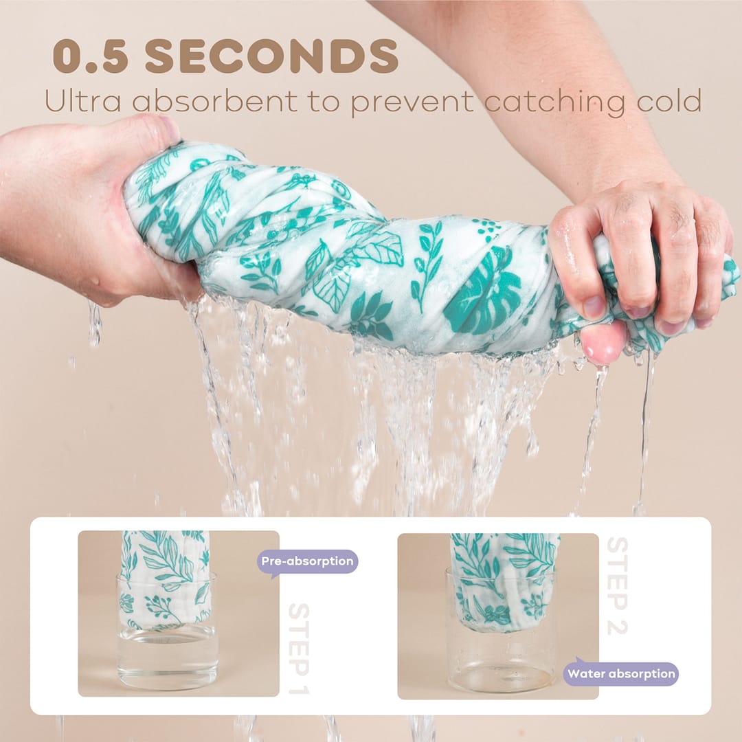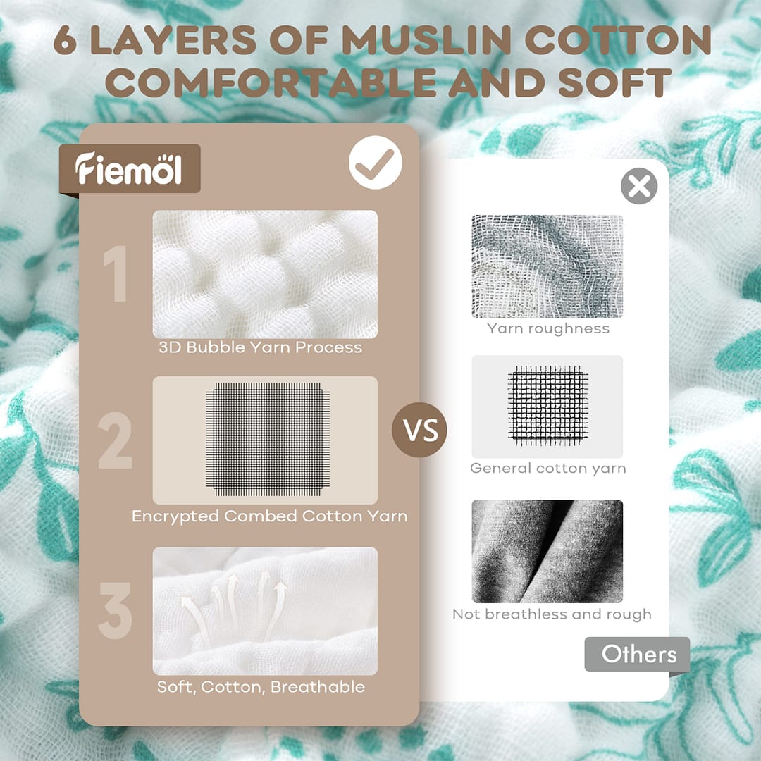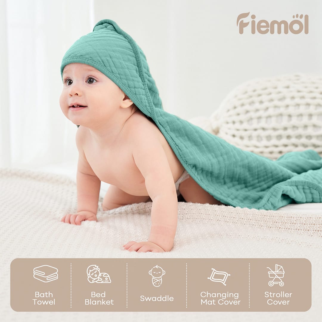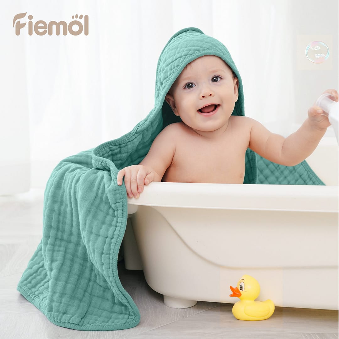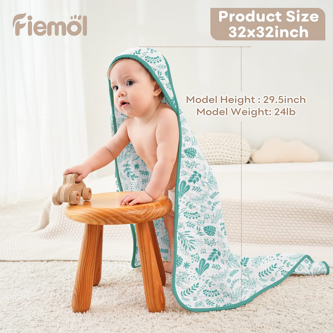 • Triple Water Absorbency: Boasting 6 layers muslin cotton, our baby bath towels have three times water absorbency than common cotton towels. The fluffy material could dry your baby from top to toe after bath instantly and keep your babies from catching a cold.
