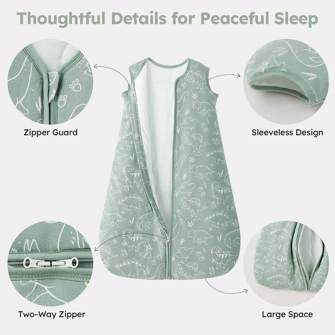 • Ideal for Play Time: Featured by large space design, this baby sleeping bag helps your baby to move freely, supporting healthy hip development. Snug-fit neckline and sleeveless design prevent baby from slipping inside the sleep sack. The sleeveless design prevents overheating and promotes airflow, ensures your little one stays warm yet dry throughout the night.