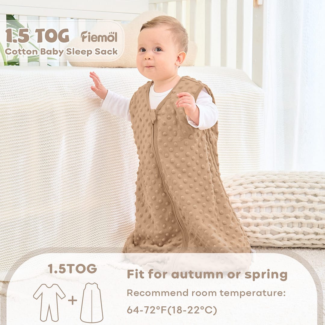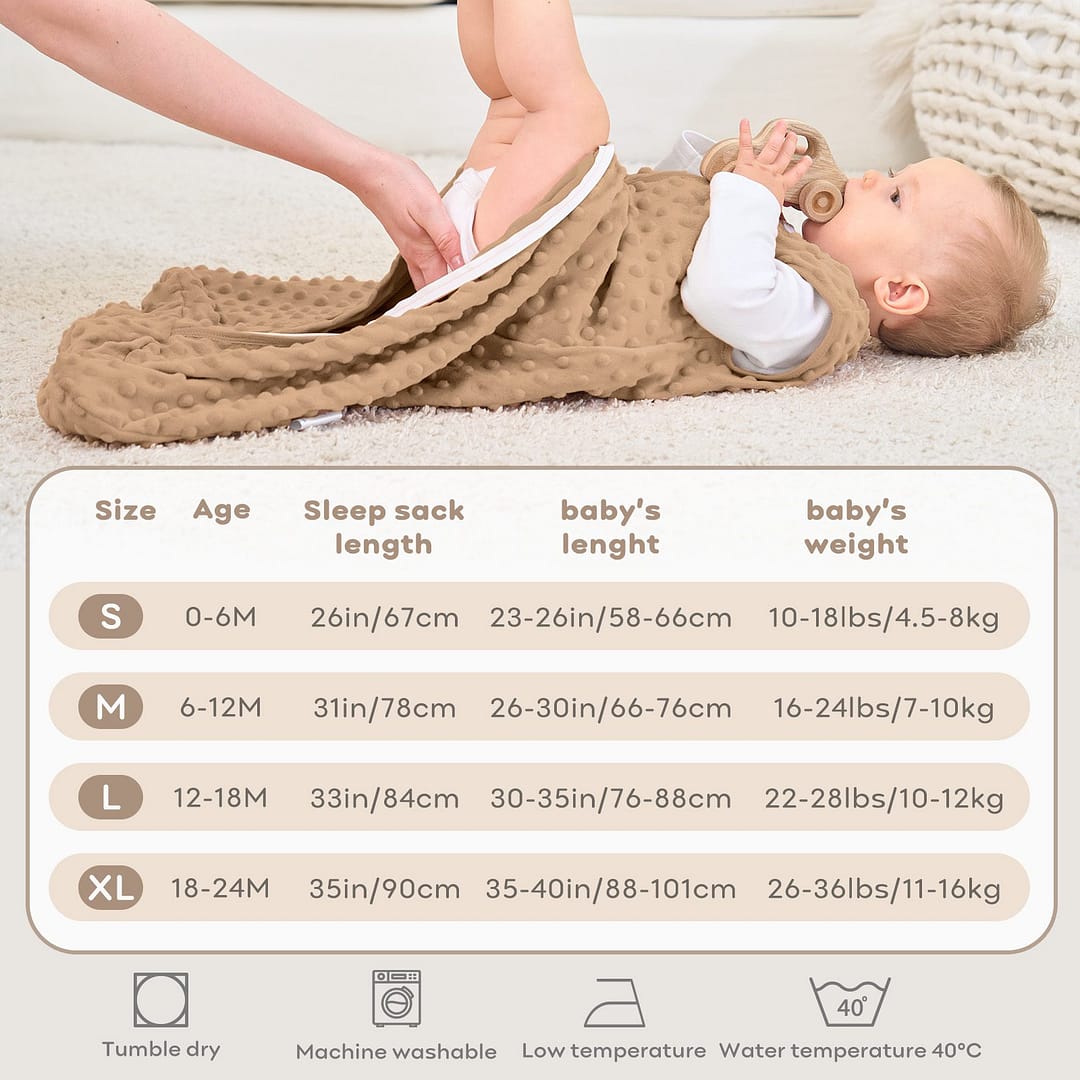 • Featured Plush Dots: Compared with other 1.5 tog sleep sack, this one has been specialised by 3D plush dots which could soothe your baby while he playing or sleeping with this baby wearable blanket. Besides, the three-dimensionality appears more quality, giving you better experience.