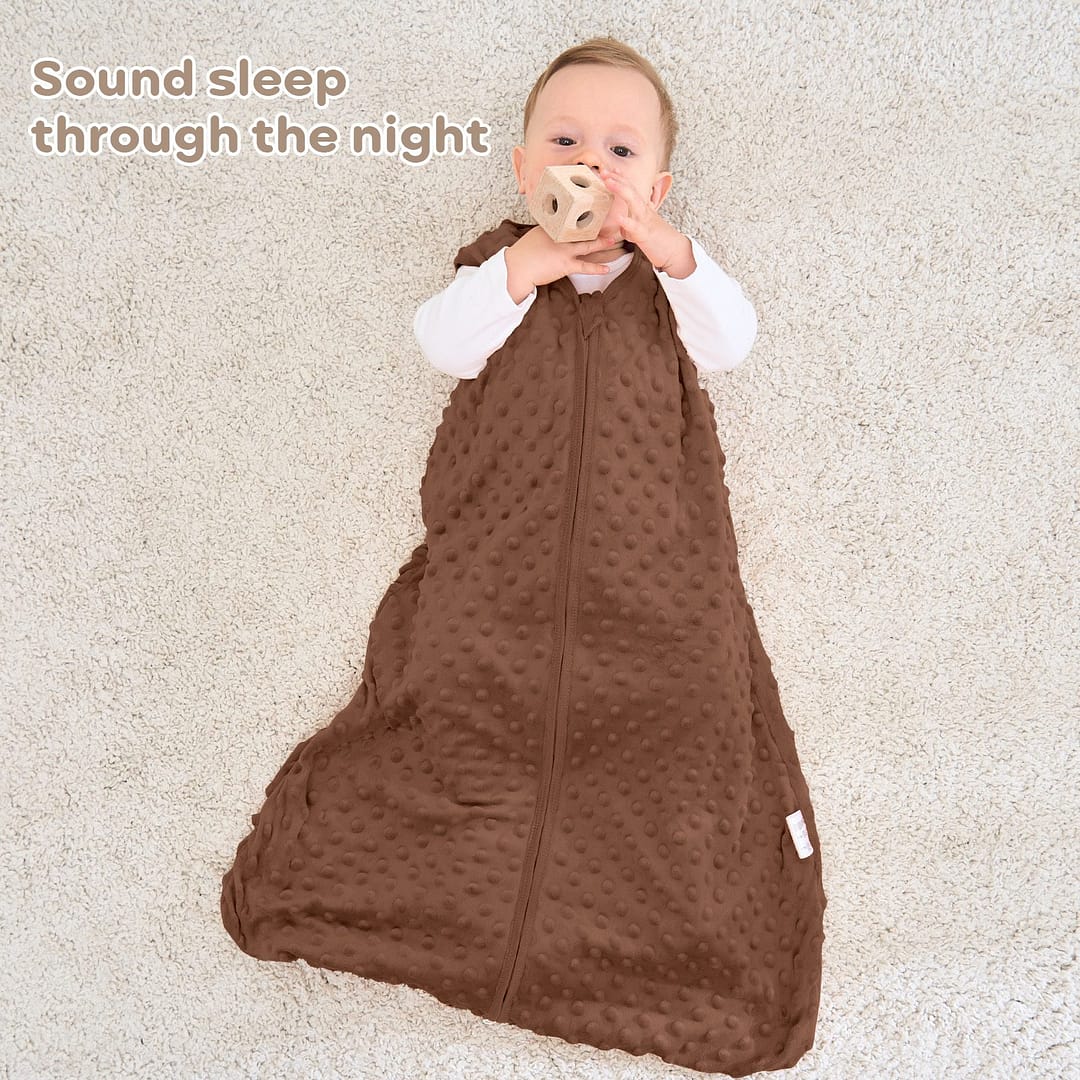 Nursery Sleep Sack Brown&Coffee Plush Dots Fleece Baby Sleeping Bag 2 Pack Wearable Blanket