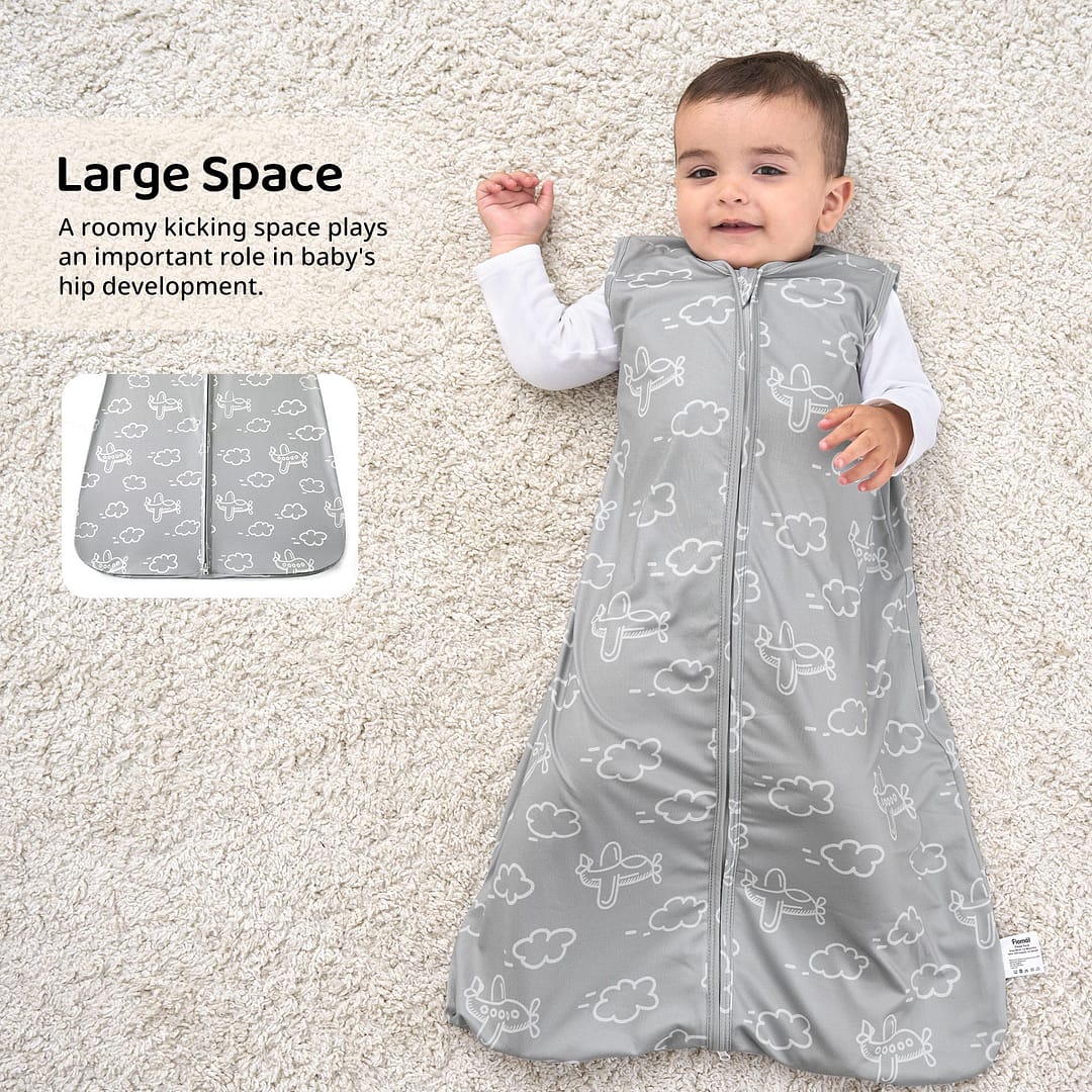 - 【Comfortable Temperature】This thin sleep sack features 0.5 TOG and sleeveless design, offering moderate warmth, ideal for spring, summer or air-conditioned rooms. The lightweight fabric delivers peaceful naps and all-night comfort for baby. With its soft, stretchy design, this baby wearable blanket provides just the right amount of coziness—keeping your baby snug and content.