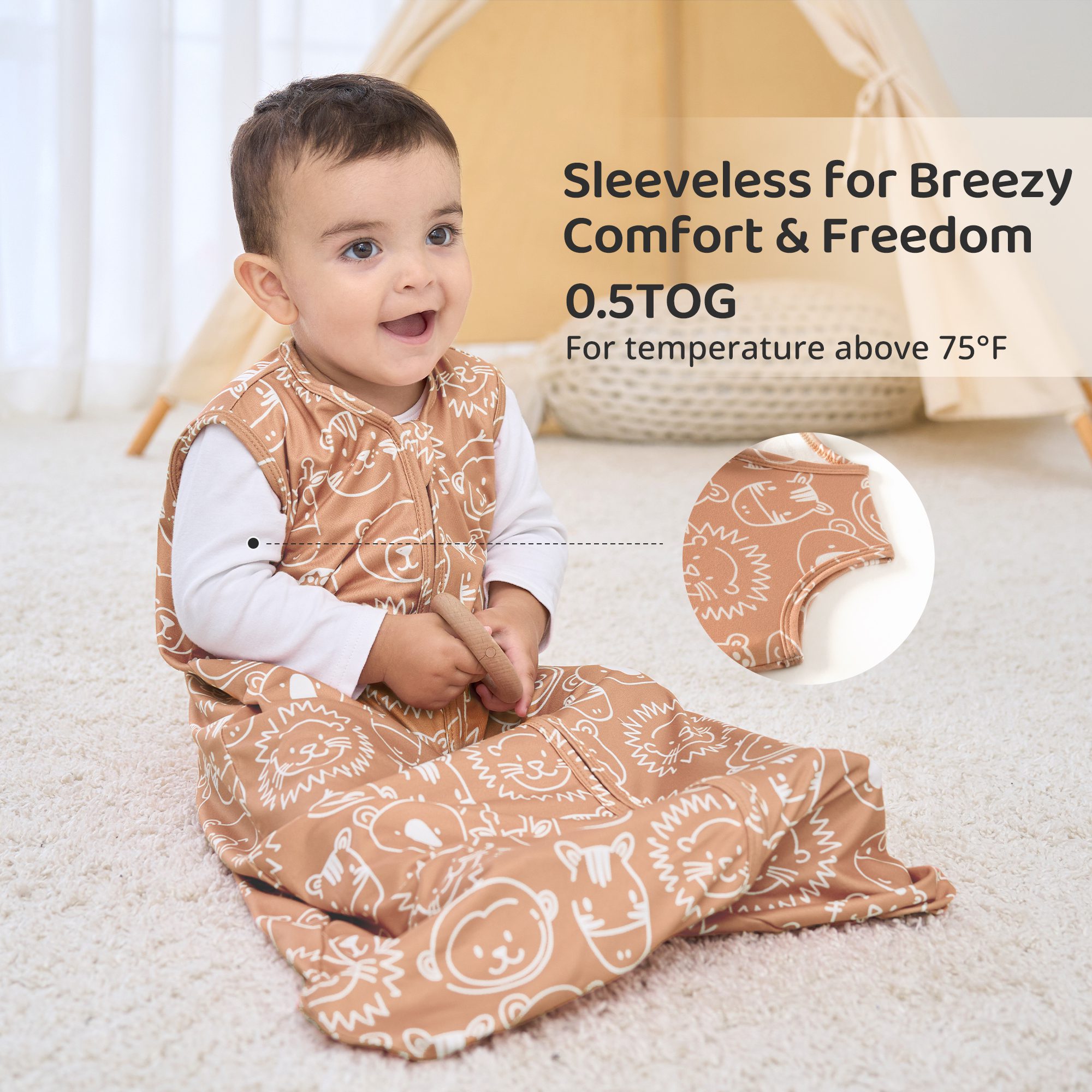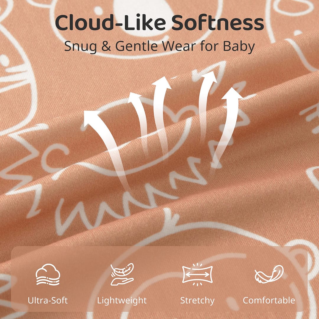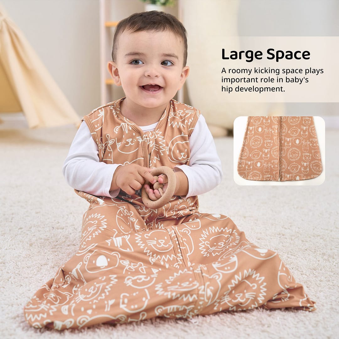- 【Comfortable Temperature】This thin sleep sack features 0.5 TOG and sleeveless design, offering moderate warmth, ideal for spring, summer or air-conditioned rooms. The lightweight fabric delivers peaceful naps and all-night comfort for baby. With its soft, stretchy design, this baby wearable blanket provides just the right amount of coziness—keeping your baby snug and content.