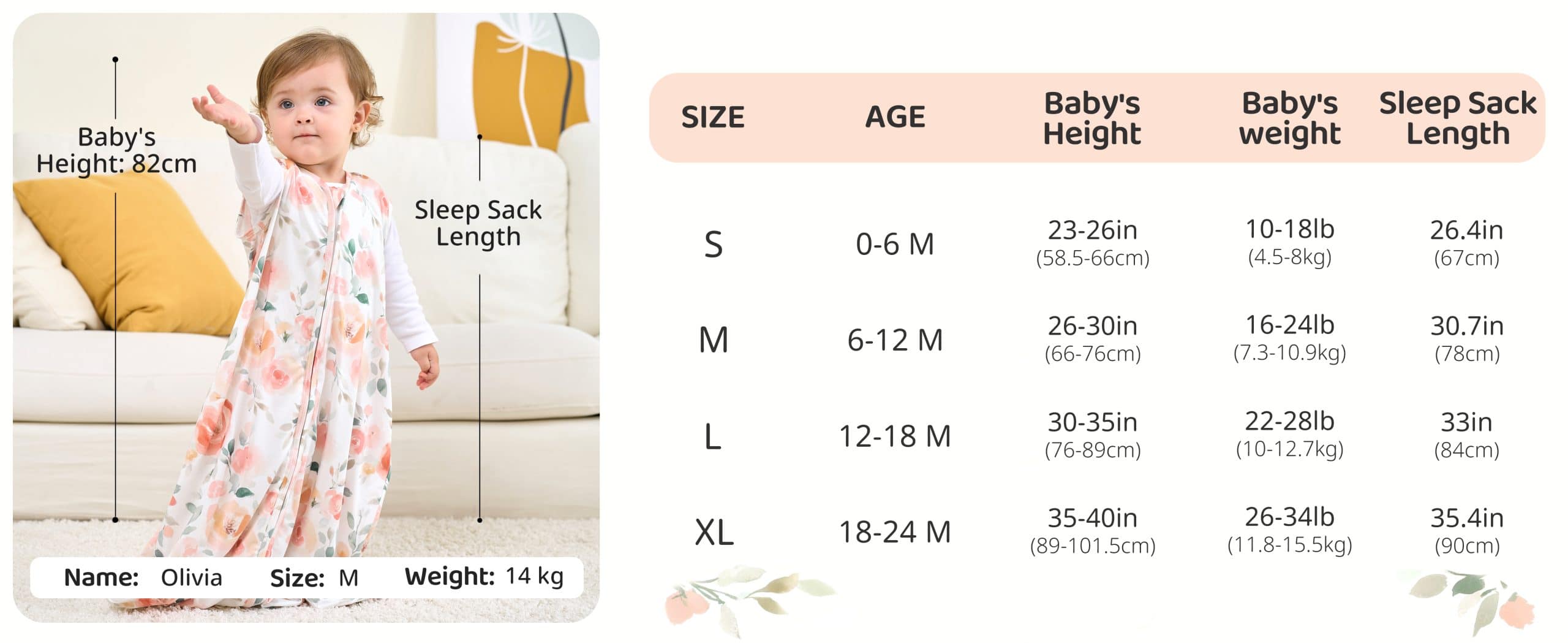 - 【Applicable Sizes】Baby sleeping bag is suitable for daily use. To meet the growth needs of newborn, infant and toddler, there are 4 sizes to choose: S (0-6 months), M (6-12 months), L (12-18 months), XL (18-24 months). We offer light sleep sack 2 pack, flexibly combined to various scenarios, a practical option for new parents.