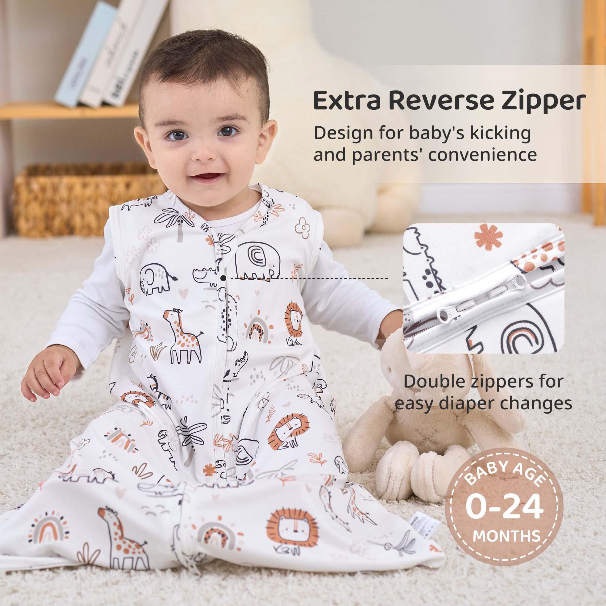 Our baby sleep sack equipped with 2-way zipper allows quick diaper changes.