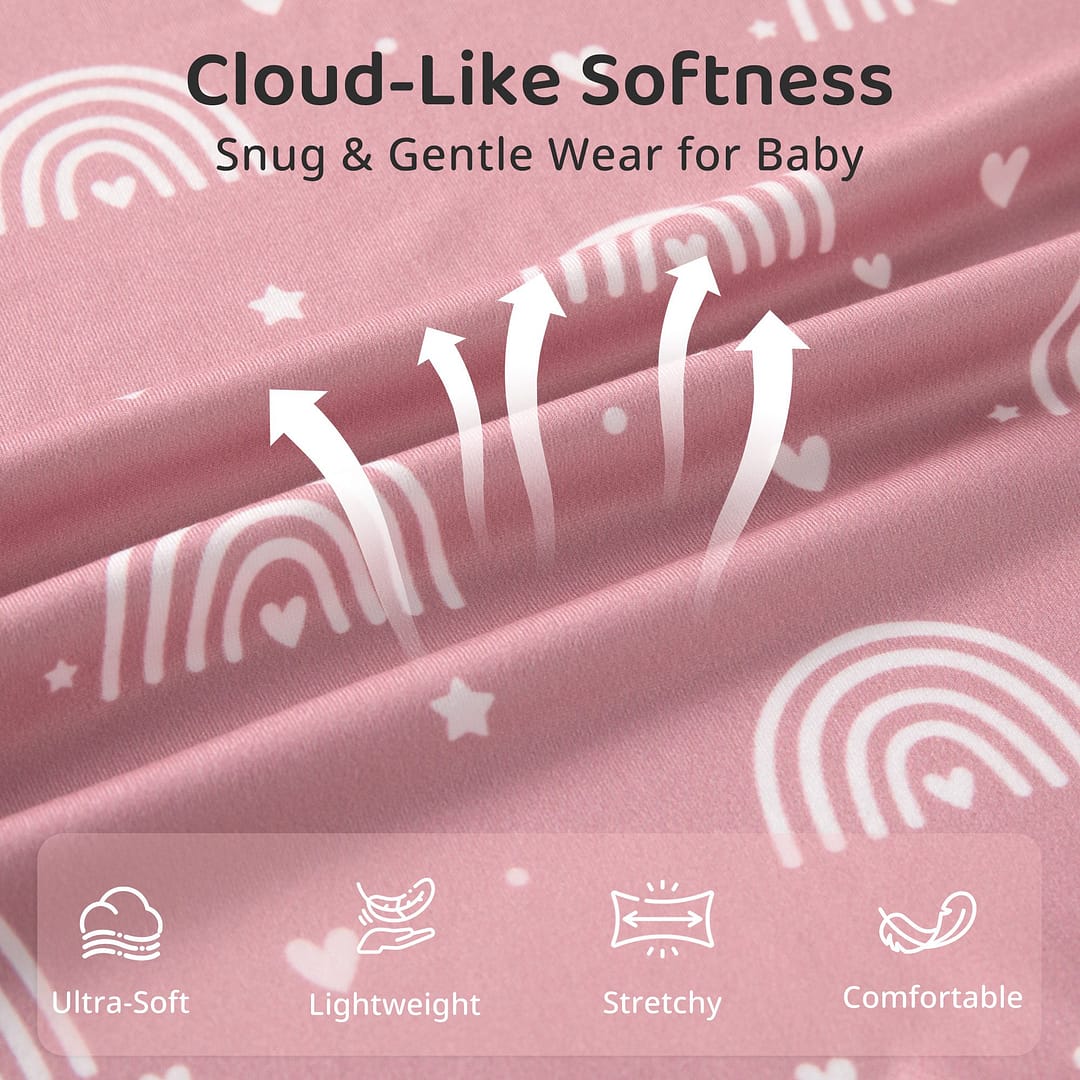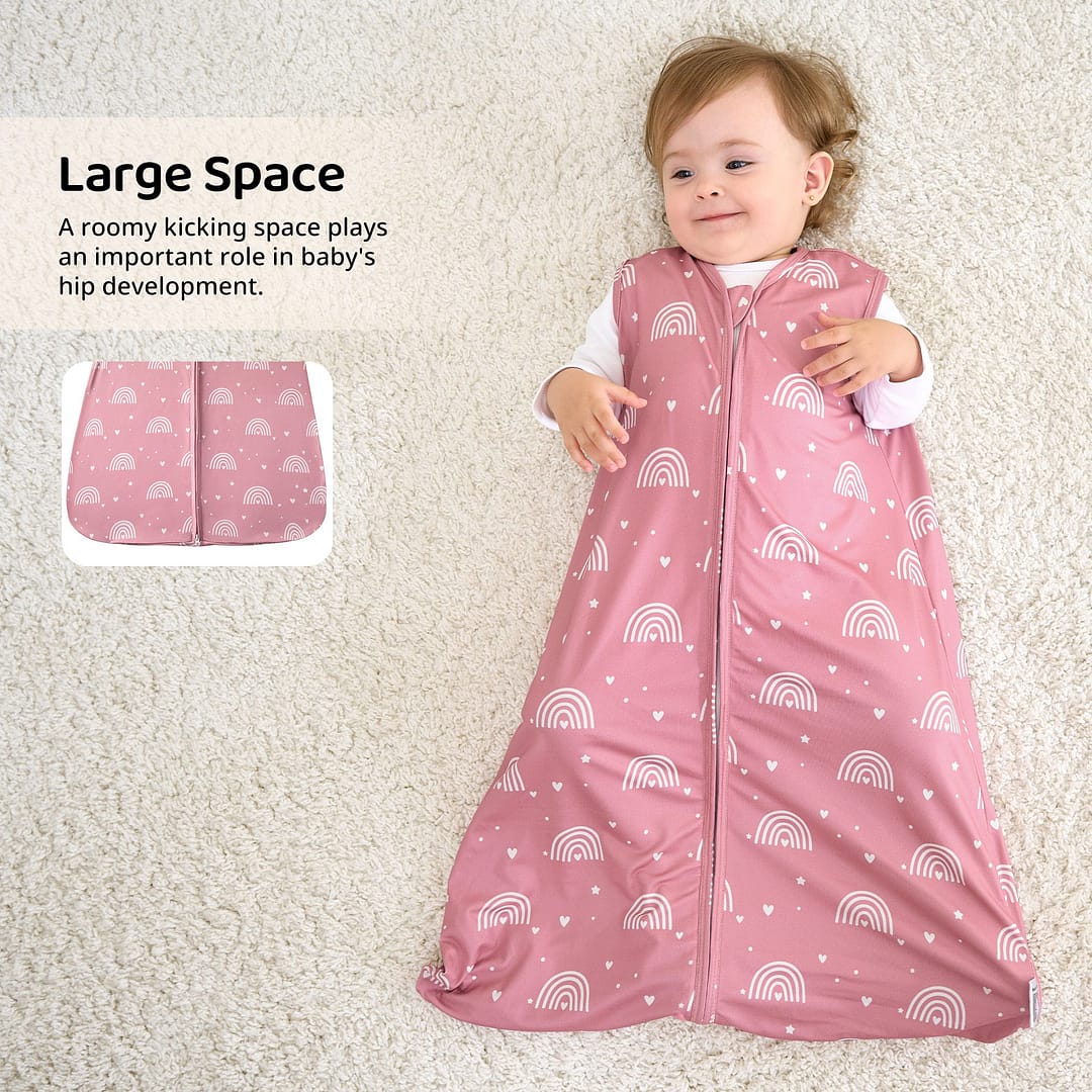• 【Comfortable Temperature】This thin sleep sack features 0.5 TOG and sleeveless design, offering moderate warmth, ideal for spring, summer or air-conditioned rooms. The lightweight fabric delivers peaceful naps and all-night comfort for baby. With its soft, stretchy design, this baby wearable blanket provides just the right amount of coziness—keeping your baby snug and content.